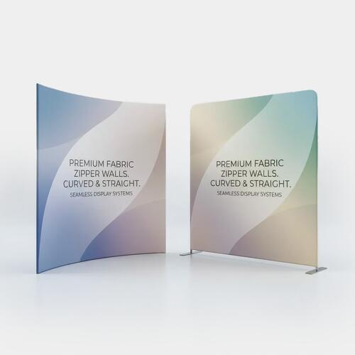 Notre gamme de produits compte des stands parapluie de forme droite ou arrondie. Le présentoir pliable textile est un stand parapluie droit équipé d'un système pliable et d'un habillage en textile fixé à l'aide de fermetures velcro®. Le Zipper Wall est un stand parapluie disponible en forme droite ou arrondie, constitué d'un cadre en aluminium à assembler, recouvert d'un habillage textile. Il souvre et se ferme sur le côté à l'aide d'un système de fermeture zip. Vous pouvez choisir la forme de votre stand parapluie en fonction de l'emplacement prévu, dans un coin ou sur une ligne droite, devant un mur ou une fenêtre, par exemple, ou tout simplement selon ce qui correspond le mieux au concept de votre salon.