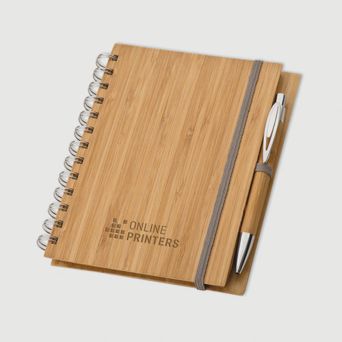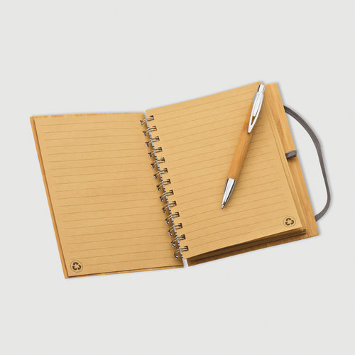 carnets de notes de 140 pages lignées en papier recyclé non blanchi et couverture en bambou véritable, avec stylo à bille en bambou à encre bleue