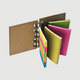 petits carnets à anneaux avec bandes adhésives de couleur (25 pièces par couleur) et notes adhésives jaunes, roses et vertes (25 pièces par couleur)