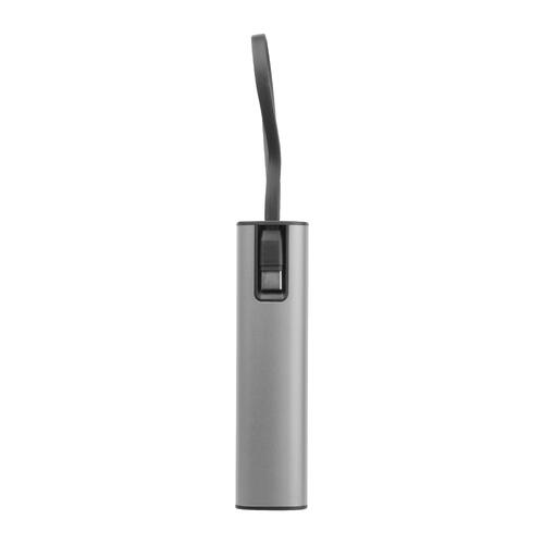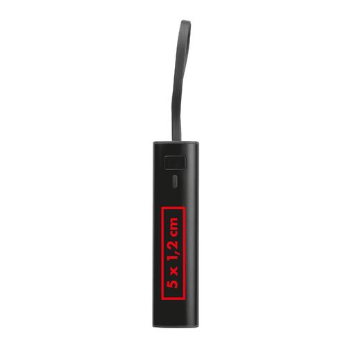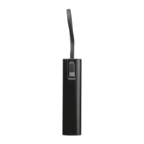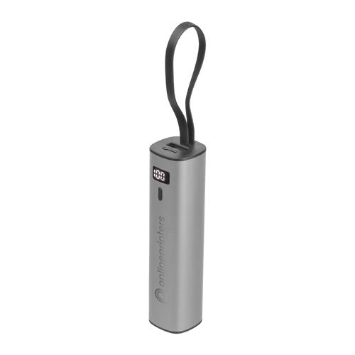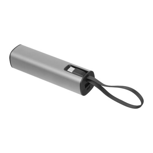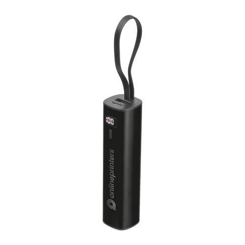 - Powerbank en aluminium avec une batterie Li-Ion de 5.000 mAh, un indicateur de charge et un câble de charge USB-C intégré