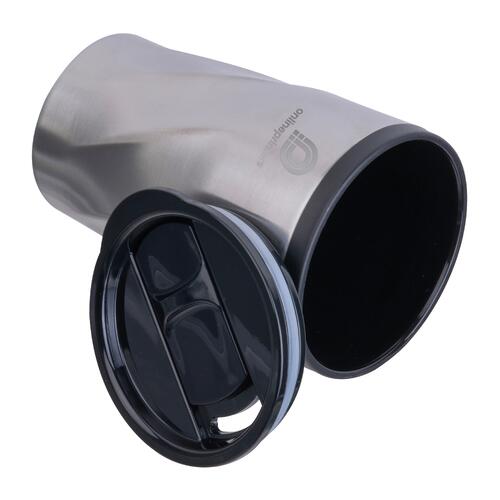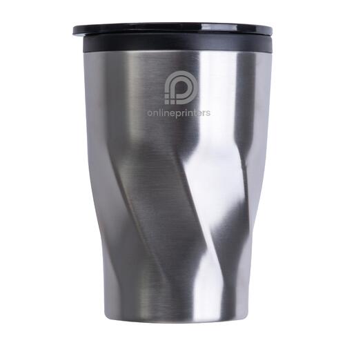 - Gobelet Termo à double paroi en acier inoxydable avec intérieur en plastique (PP), un couvercle avec fermeture à glissière ainsi qu'une contenance de 350 ml