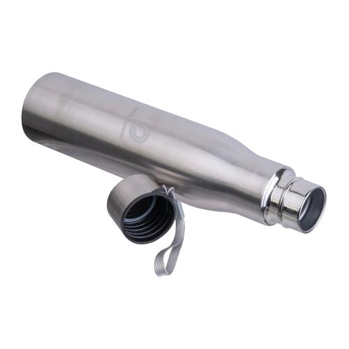 - Gourde à simple paroi en acier inoxydable 304 recyclé avec dragonne sur le couvercle et une contenance de 900 ml
