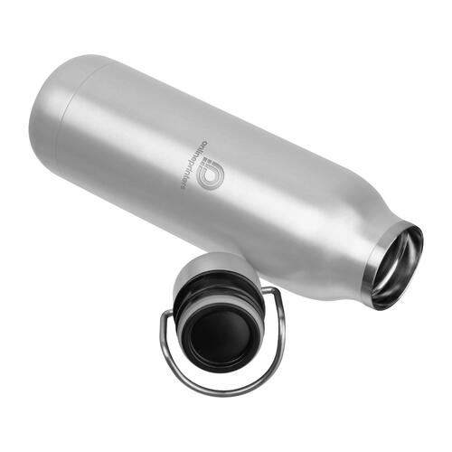 - Gourde à double paroi en acier inoxydable avec poignée sur le couvercle et une capacité de 600 ml