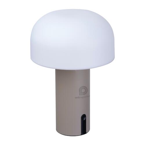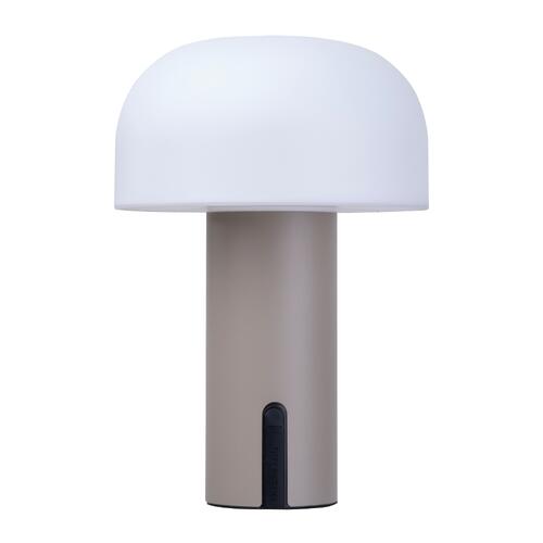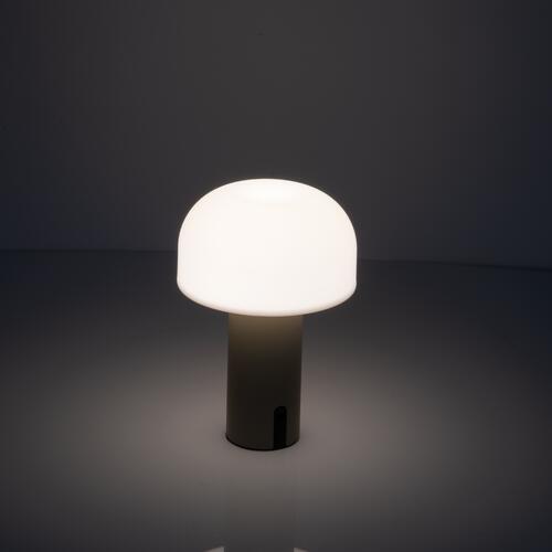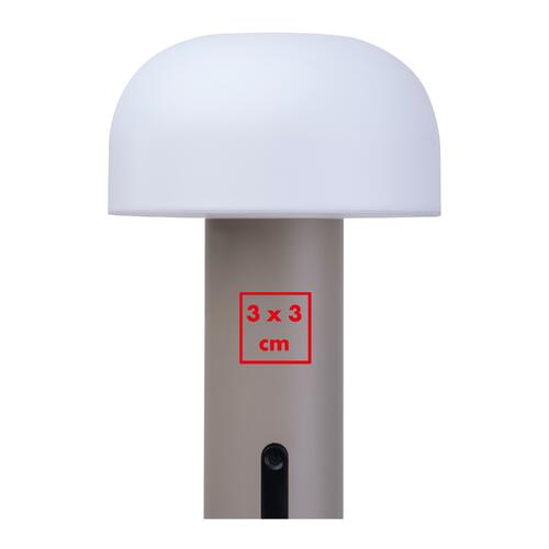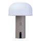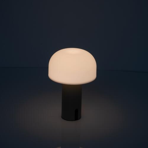 - Lampe à batterie (1.800 mAh) avec abat-jour en plastique et pied en acier inoxydable ainsi qu'un câble de chargement USB-C de 70 cm