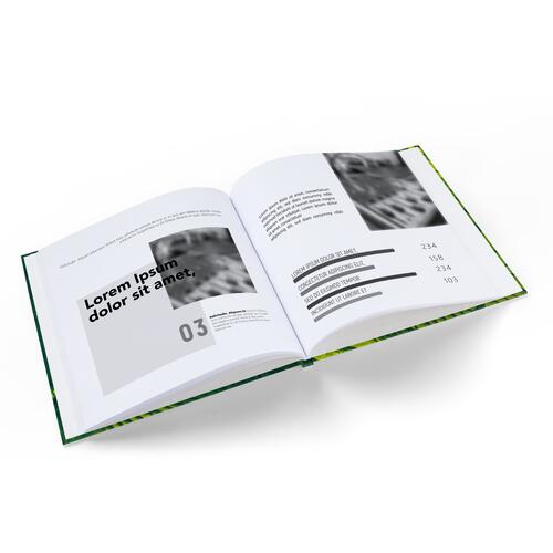 - Livre à couverture rigide en format portrait avec dos carré et coins pointus, tranchefile de couleur blanche incluse