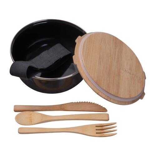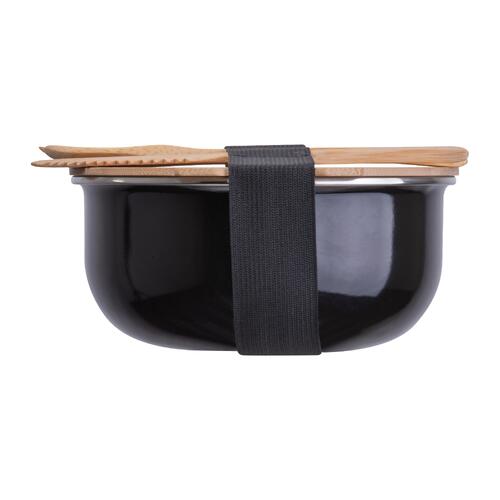 - Boîte à lunch (700 ml) en métal avec couvercle en bambou ainsi qu'une cuillère, une fourchette et un couteau, également en bambou