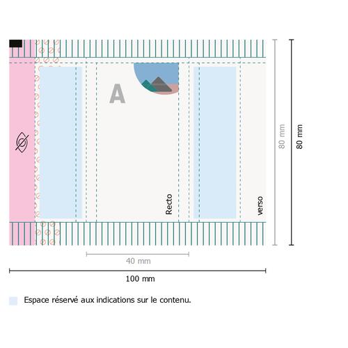 - Les mentions légales obligatoires comme les indications sur le contenu, la date de péremption et le fabricant / distributeur sont automatiquement ajoutées dans le cadre du processus de production. Veuillez prendre en compte les zones indiquées dans la fiche technique et dans le modèle d’impression