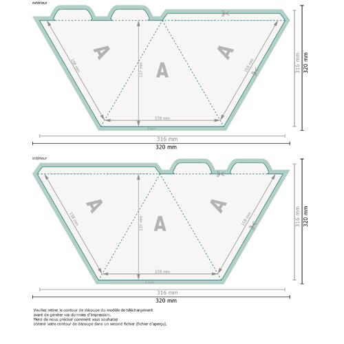 Exigences relatives aux fichiers d'impression Pyramide petite, 3 côtés