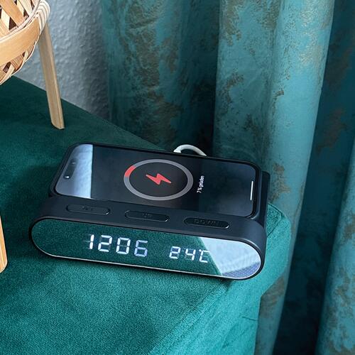- Réveil avec écran miroir et fonction de chargement sans fil