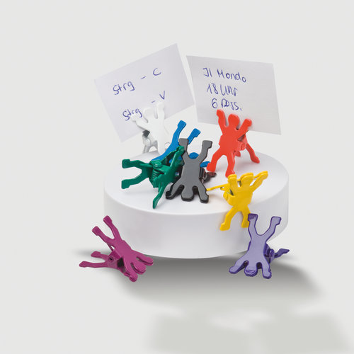 8 bonhommes en métal coloré avec des clips pour tenir des notes, des cartes de visite et bien plus encore